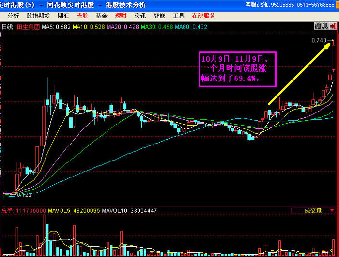 10月9日-11月9日,HK8136田生集團(tuán)一個(gè)月的漲幅達(dá)到了驚人的69.4%。