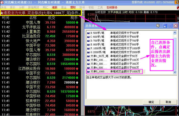客服熱線:952555 1、港股主力大單