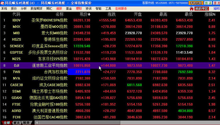 客服熱線:9525555、全球金融指數(shù)
