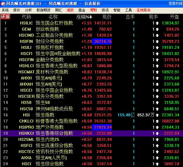 包含恒生中資企業(yè)指數(shù)、中國(guó)內(nèi)地綜合指數(shù)、恒生中國(guó)企業(yè)指數(shù)、創(chuàng)業(yè)板指數(shù)等綜合指數(shù)實(shí)時(shí)數(shù)據(jù)。