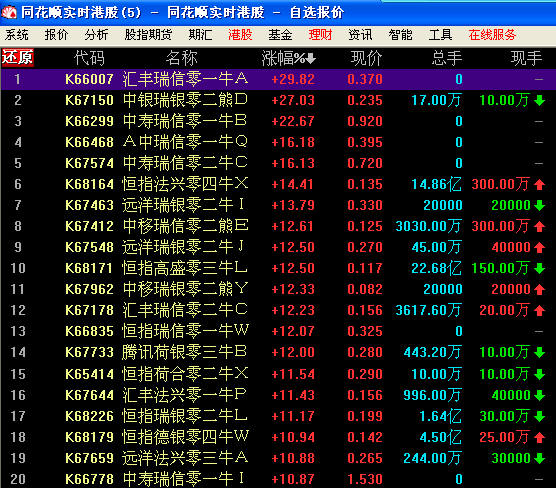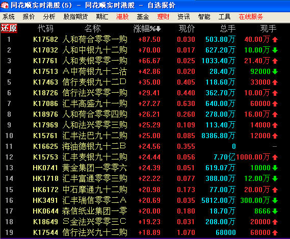 同花順實(shí)時(shí)港股可以看牛熊證實(shí)時(shí)行情。